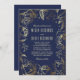 Gold Foil Roses and Baby's Breath Navy Wedding Invitation