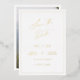 A minimal save the date card featuring real gold foil stamped modern calligraphy for the perfect way to announce your wedding.