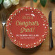 Gold Foil Script Confetti Congrats Grad Red Paper Plate