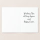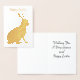 This Easter greeting card has the side profile of a sitting bunny rabbit done in gold foil with an Easter greeting on the inside of the card. Customise the text on the front and inside with the templates.
