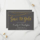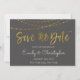 Gold Foil String Lights and Handwritten Script Charcoal Grey Elegant Save the Date Invitation Card.