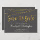Gold Foil String Lights and Script Save the Date