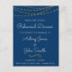 Faux Gold Foil String Lights and Handwritten Script Navy Blue Elegant Wedding Rehearsal Dinner Invitation.