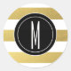 GOLD FOIL STRIPES | BLACK MONOGRAM CLASSIC ROUND STICKER