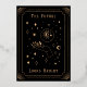 This graduation announcement card was inspired by tarot cards and features real gold foil accents on a black background framing a photograph of the graduate. The graduate's name and school are displayed on the bottom of the card and the date is in Roman numerals along the top between celestial elements, further adding to the magical theme. The back of the graduation announcement card features a mystical tarot-inspired gold design that reads "The Future Looks Bright" but can be edited to suit your needs.