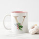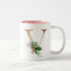 Gold Foil V Monogram Pine & Berry Christmas Two-Tone Coffee Mug