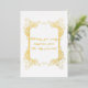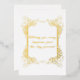 Wedding greeting card in gold foil with black lettering on the back.