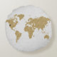 Gold Foil World Map Custom Moveable Heart Location Round Cushion