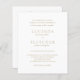 Elegant faux gold all in one budget wedding invitation featuring a simple and minimal design with the names of the bride and groom in a traditional serif font and the middle and last names in an elegant calligraphy script. The back has your guest details as well as an optional QR code. If you prefer, you may remove the QR code in the design editing tool. A classic style that is perfect for a formal wedding.