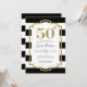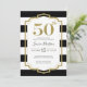Gold Frame and Black Stripes Glitter 50th Birthday Invitation