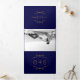 Gold frame and initials monogram navy blue wedding Tri-Fold invitation