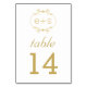 Gold frame and initials elegant monogram wedding table number place card featuring your initials in a gold frame with leaves on white. This monogrammed chic customisable wedding template design is perfect for a classic wedding.