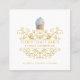 A n elegant decorative gold frame baker's logo bakery business card in gold type on white with an elegant frosted cupcake. Unique decorative vintage typography.