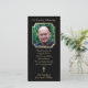 This sympathy thank you photo card features your loved one's photograph within a shiny gold ornate frame. There are four gold text fields that are easily customised. A simple gold cross separates your message from your signature. Everything is placed on a black background.
