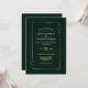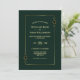 Invite your friends and loved ones to your wedding with this modern gold-framed green wedding invitation.