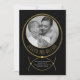This exquisite wedding invitation features a golden frame set against a striking black backdrop, elegantly displaying your photograph and names. The design takes its cue from a wire choker and incorporates two overlapping circles. On the reverse side, the couple's names are written in gold on a dark backdrop, set in a diagonal arrangement.