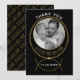 This exquisite wedding Thank You photo card design will leave you speechless! The black background perfectly complements the luxurious golden frame, which displays your photograph and names in a way that is reminiscent of a wire choker with two overlapping circles.