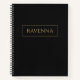 This personalised notebook features a deep black background with a custom name written in an elegant gold serif font. A thin gold frame surrounding the name creates a clean and refined design inspired by luxury stationery style. The black and gold palette gives the notebook a sophisticated look that works beautifully for school, work, journalling or daily planning. The gold effect is printed colour only and does not contain real metallic shine. Personalise it with any name to create a stylish notebook that also makes a thoughtful gift.