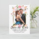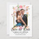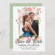 Romantic and chic Save the Date card features your couple's photograph surrounded by a sleek and modern gold frame. Blush pink roses, rosy pink roses and creamy apricot roses embellish the frame. Save the date is written below in a flowing script. Your names are written in a modern font with the date and location below. Formal invitation to follow completes the text. All of the text is editable. You can also change the size, font and colour. The back of the Save the Date card is a soft sage green to complement the roses. Look closely and you'll see just the hint of a floral pattern.