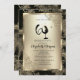 Elegant gold floral frame, and wine glass on a floral damask background. All text is adjustable and easy to change for your own party needs. This black and gold damask design ensures a chic and refined invitation that sets the tone for an unforgettable milestone birthday celebration.