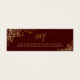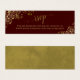 This miniature card is perfect for adding an online rsvp web address to your wedding invitations. Features an elegant chocolate brown or auburn coloured design with lacy gold faux foil curls and swirls and script calligraphy reading RSVP. There is space for your website url and a response deadline. The back is a beautiful marbled gold colour.