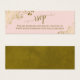 This miniature card is perfect for adding an online rsvp web address to your wedding invitations. Features an elegant blush pink design with lacy gold faux foil curls and swirls and script calligraphy reading RSVP. There is space for your website url and a response deadline. The back is a beautiful marbled gold colour.