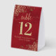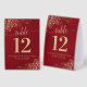 Gold Frills on Crimson Red Wedding Table Number