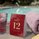 These beautiful table tent signs will make it easy for your guests to find their tables at your wedding reception. The elegant crimson red and gold design features lacy script calligraphy with ornate floral curls and swirls in the corners. There is space for the names of the couple and the wedding date.