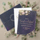 Elevate your stationery suite with this luxurious gold-front, navy-back envelope. The front features a rich gold backdrop elegantly printed with etched botanical motifs and personalised names, while the reverse delivers a deep navy tone when sealed. The interior and flap lined in gold create a luxe peek-a-boo effect, perfect for envelopes that make an impression. This two-tone design is ideal for formal or evening weddings and pairs beautifully with gold-foil invitations or velvet programs. Fully customisable in print — simply replace placeholder text with your guests’ details.