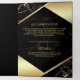 Gold Geometric Black Marble Photo Wedding Tri-Fold Invitation