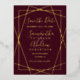 gold geometric burgundy script save the date foil invitation postcard