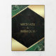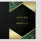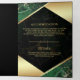 Gold Geometric Emerald Green Marble Photo Wedding Tri-Fold Invitation