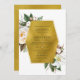 Floral wedding invitation featuring blush pink peonies, wild herbs, cotton and lilies with gold geometric frame customisable to your event specifics.