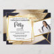 Gold geometric navy DIY photo caduceus graduation Invitation