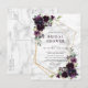 Modern and trendy, this bridal shower postcard invitation design features a faux gold geometric embellished with watercolor eucalyptus greenery and plum purple floral arrangements, over a faux white marble bark texture. Perfect for modern brides! Contact designer for matching products or design variations. Copyright Elegant Invites. All rights reserved.