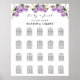 Gold Geometric Purple Floral Wedding up to 200 Guests Seating Chart poster! Personalize this template to add the guest list to it. Round tables can be between 6 to 10 people. Rectangle tables can be more. If there are fewer at each table, add spaces or dots for the next lines to make 10, if you don't want the table to move down. The design features an elegant faux gold glitter geometric frame pattern. Overlaid with watercolor purple roses and greenery foliage. Click to customize further to make more changes. Everything is customizable.