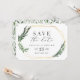 bold modern design featuring a gold geometric frame with beautiful watercolor leafy foliage. This elegant rustic collection is a great addition to a fall or spring wedding and features all the products you will need for your special day - save the dates, invitations, table planners and more.