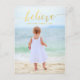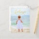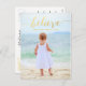 Printed Gold Foil Believe 2014 Holiday Photo Postcard. Elke Clarke © Available at www.zazzle.com/monogramgallery. Send out your Christmas holiday greetings to your friends and family using this beautifully, simple holiday photo card with the word "Believe" written in gold typography text overlay design in a vertical card format. Replace sample photo with your own. Printed photo effect of gold foil. Other colours available for lined pattern and colour of the word believe in our shop.