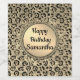 On a gold glitter background are gold and black leopard spots for an exotic feel where in the middle is a shimmery gold sphere with gold flourish where you can personalise your event creating a stylish animal chic touch to any celebration.