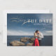 Gorgeous, on-trend save the date announcements featuring your favourite engagement photo. Lovely typography and all white text makes this design truly stand out. Inspired by hand-lettering, these save the date cards are classic and classy with a chic yet traditional touch.