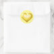 This round sticker features a shapely gold heart with a glass-like appearance. The gold heart sticker is an appropriate addition to golden anniversary invitation envelopes, gift bags, and party favours.