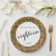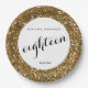 A beautiful glitter gold 18 birthday paper plate. Please note there is not actual glitter on the paper plate, but a design effect. You will be able to easily personalize with the name and birthday date. This beautiful eighteen birthday paper plate will be sure to add a "sparkly" touch to her birthday party!