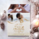 This festive 3-photo holiday card blends elegance and warmth with a soft ivory background, gold glitter ribbon accent, and charming reindeer sleigh motif. Ideal for couples or small families celebrating their first Christmas together. Personalise with your photos and names for a truly memorable keepsake.