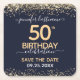 Elegant Faux gold glitter with shimmering confetti highlights on the top and bottom border. All text is adjustable and easy to change for your own party needs. Great elegant 50th birthday template design. Save the date coasters reminder.