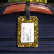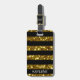 Features a gold glitter and black stripe design. Personalise with a name on the front, and a name and address on the back.