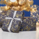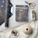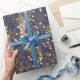 Gold glitter and glittering blue stars on black ba wrapping paper