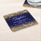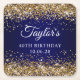 Gold Glitter and Navy Blue 40th Birthday Square Paper Coaster