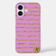 Features a wavy, striped gold glitter pattern on a pink background. Personalise with an initial on a gold foil circle.