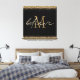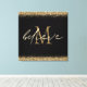 Gold Glitter Believe Script Monogram Initial Black Canvas Print