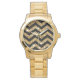 Gold Glitter & Black Chevron, Classic Look Design Watch